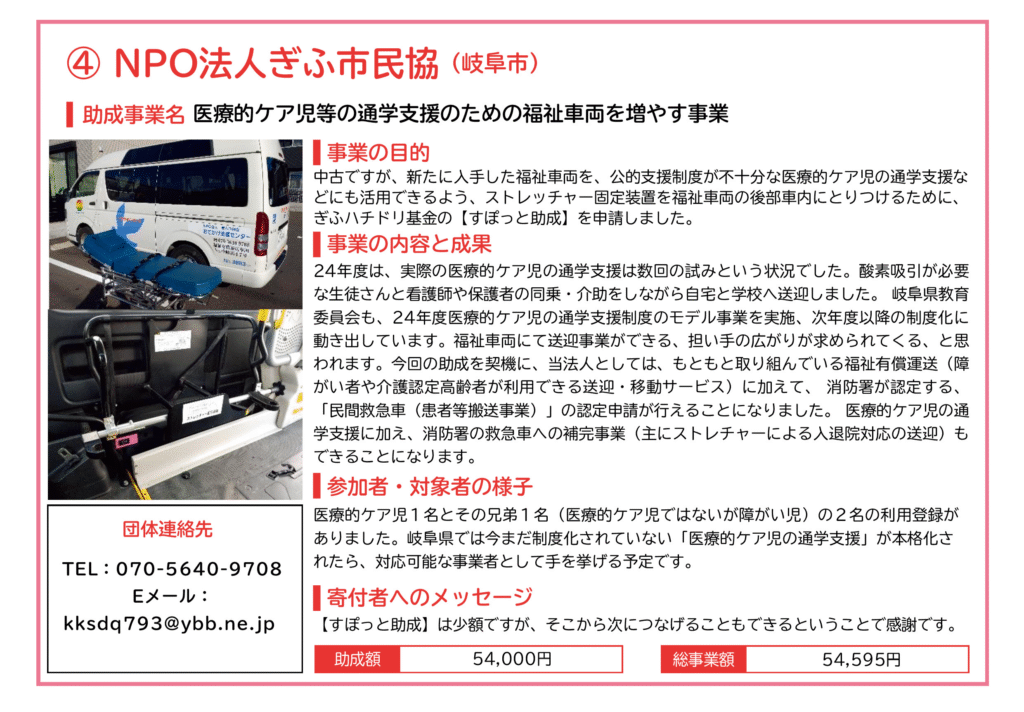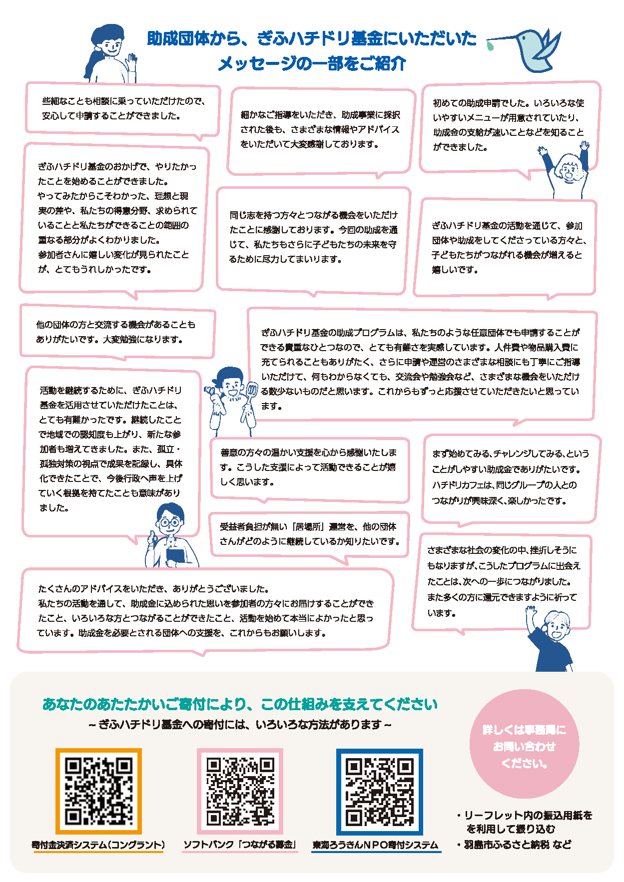各団体の連絡先等は、ぎふハチドリ基金の事務局までお問い合わせください