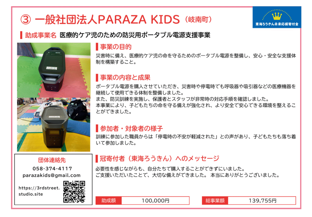 ☆3 東海ろうきん未来応援寄付金(合計3,000,000円)