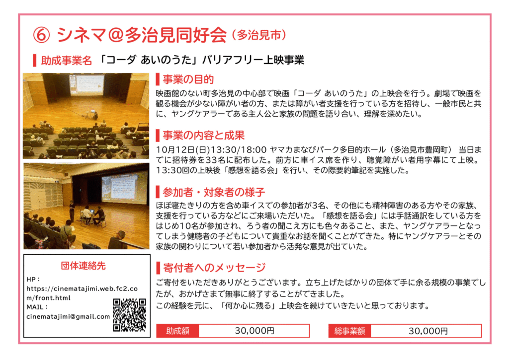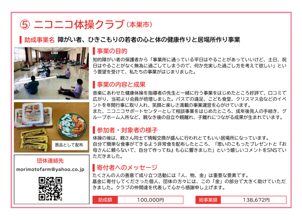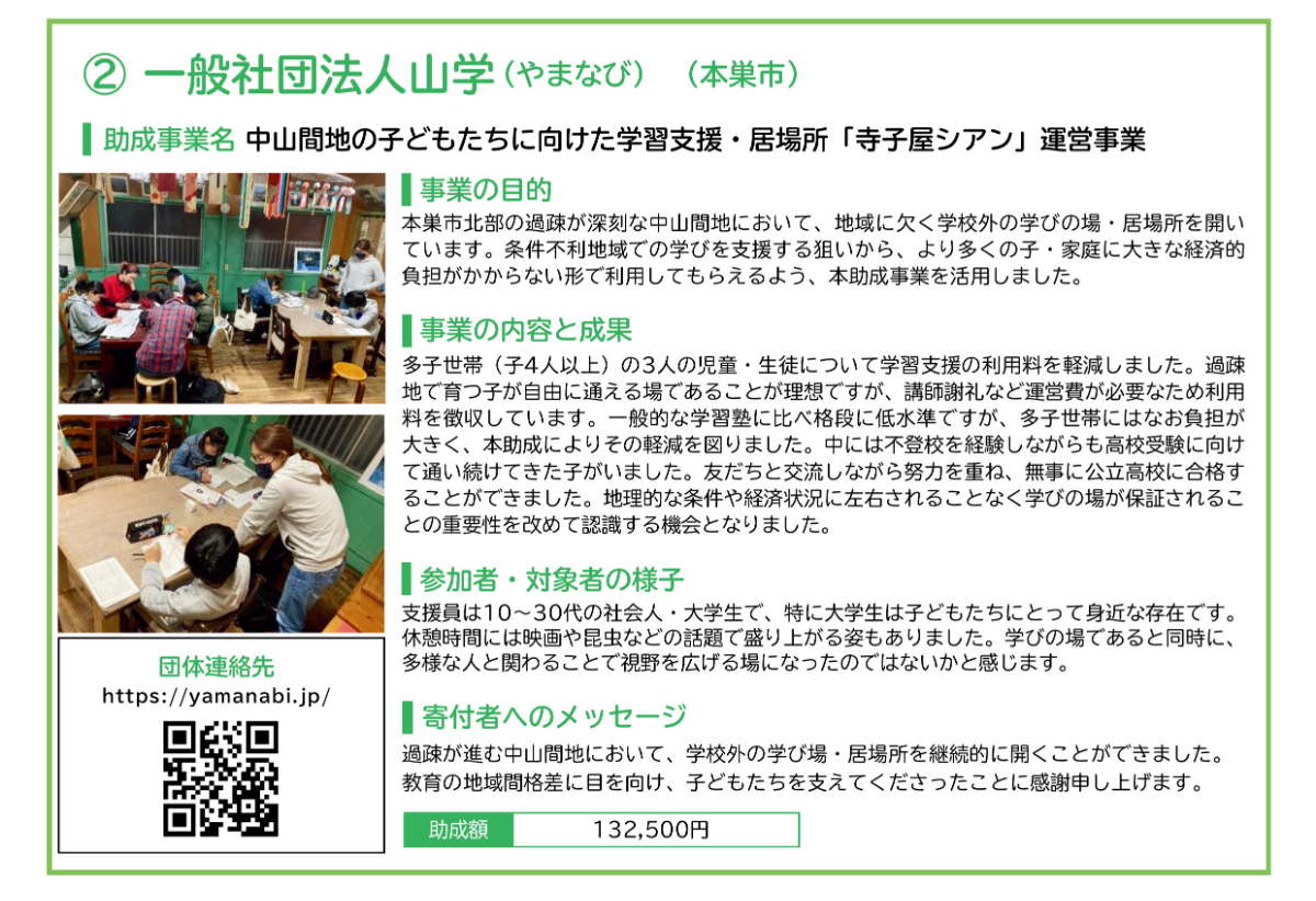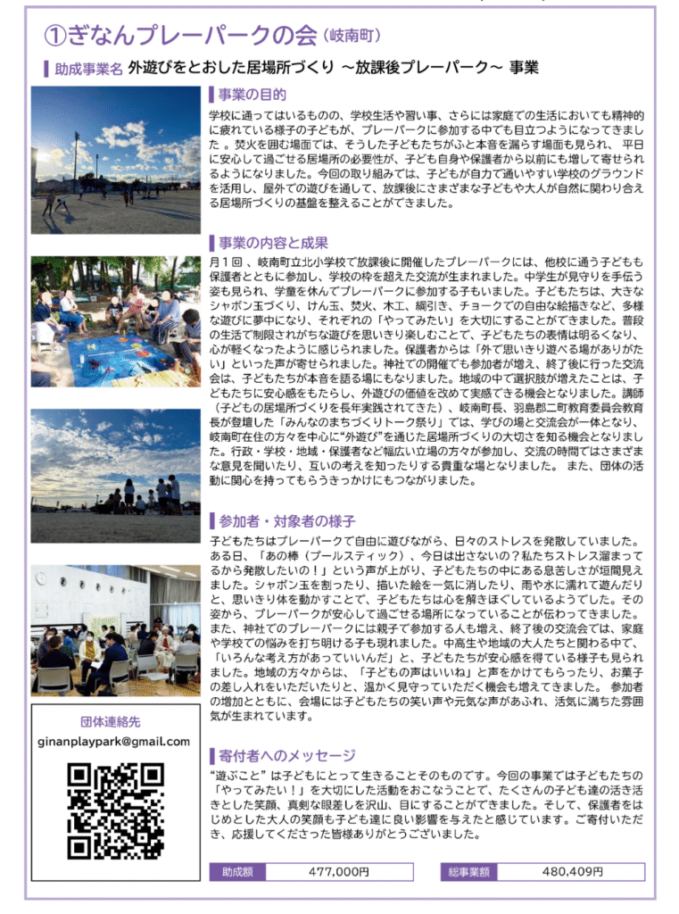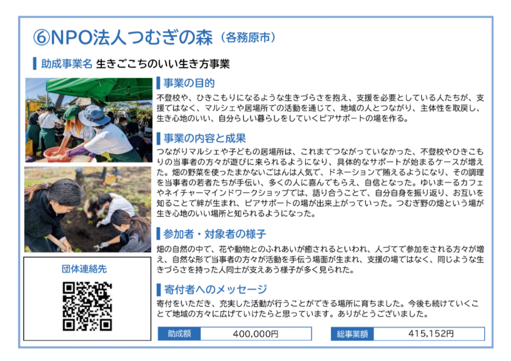 2024年度も、助成を受けて活動した団体の報告を掲載しています。各助成事業実施団体の特色が出ており、活動現場のあたたかみが伝わってくるような報告書となっております。