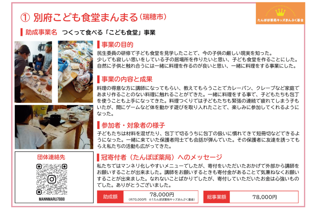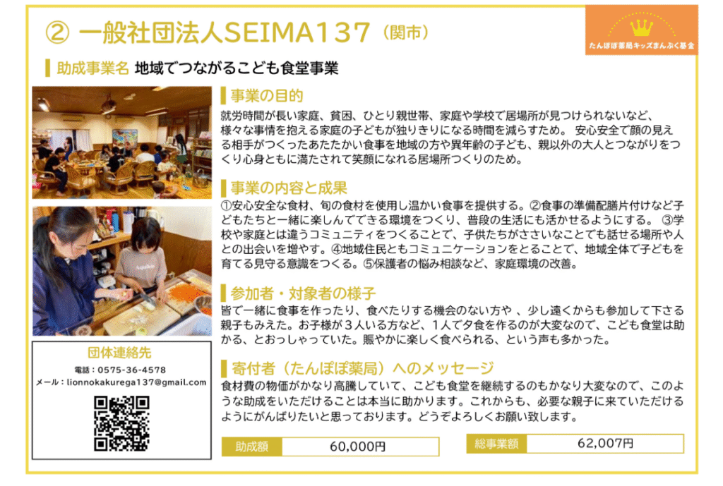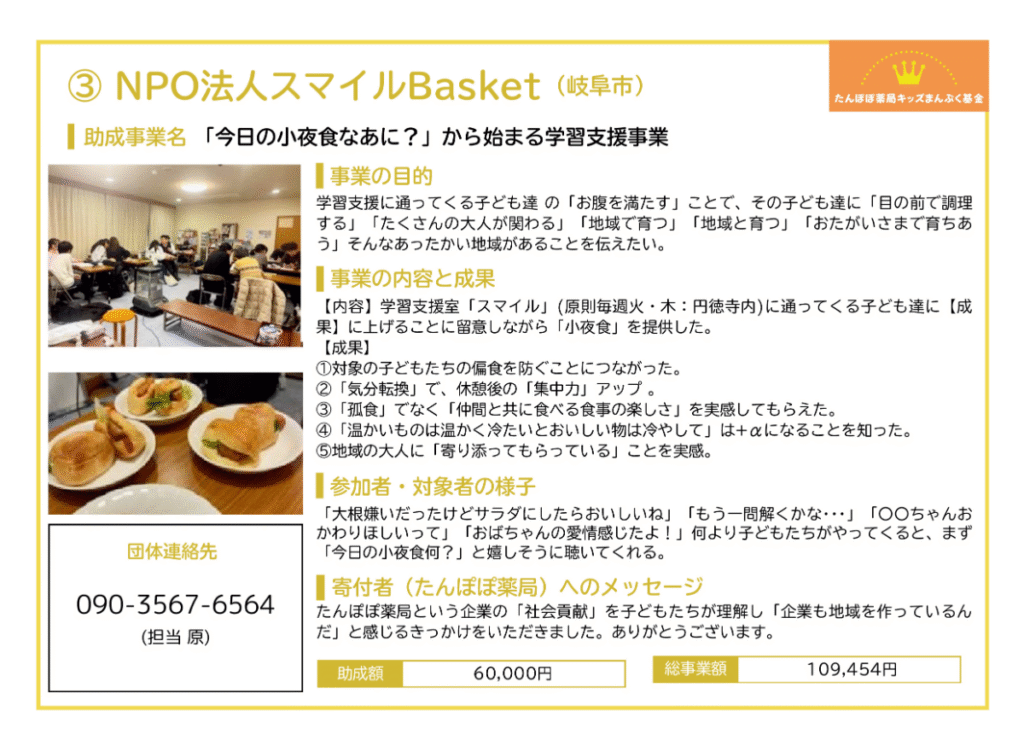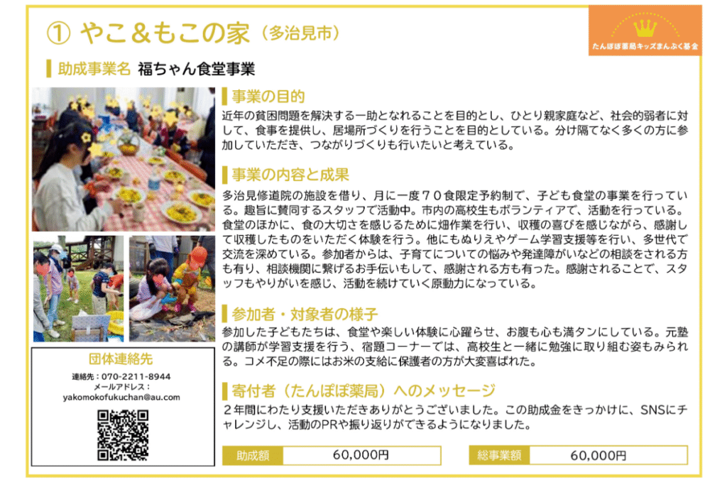 たんぽぽ薬局キッズまんぷく基金「こども食堂応援助成」(2023年度からの継続2年目)