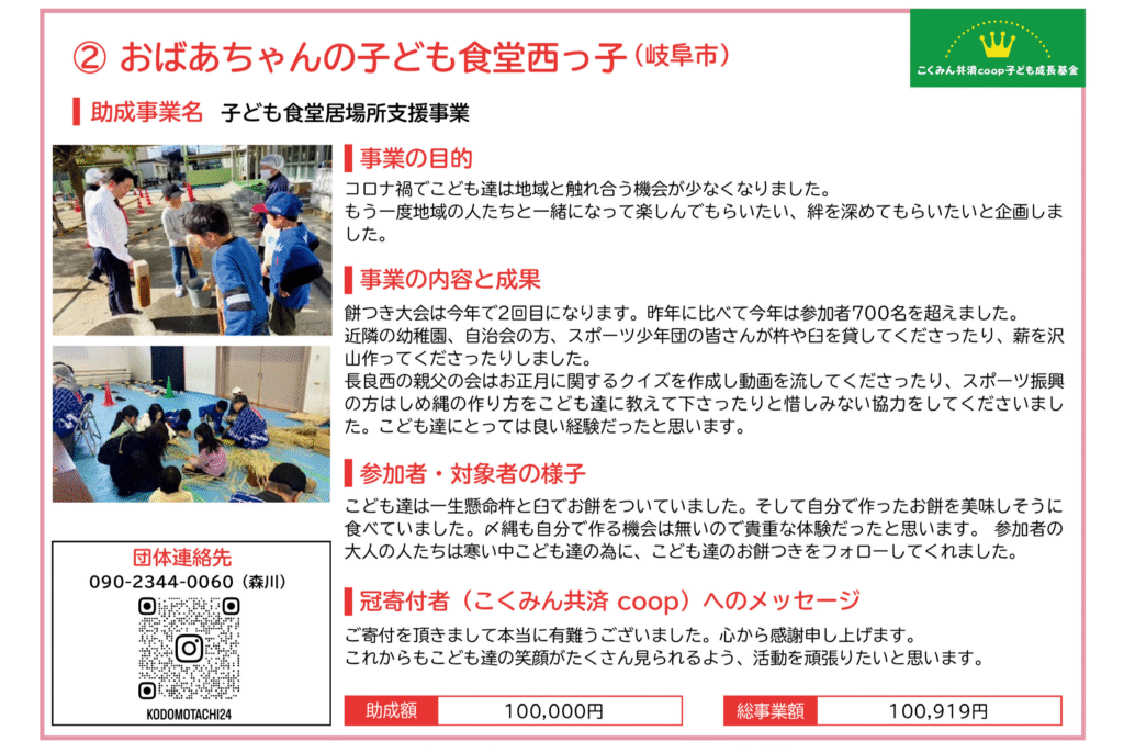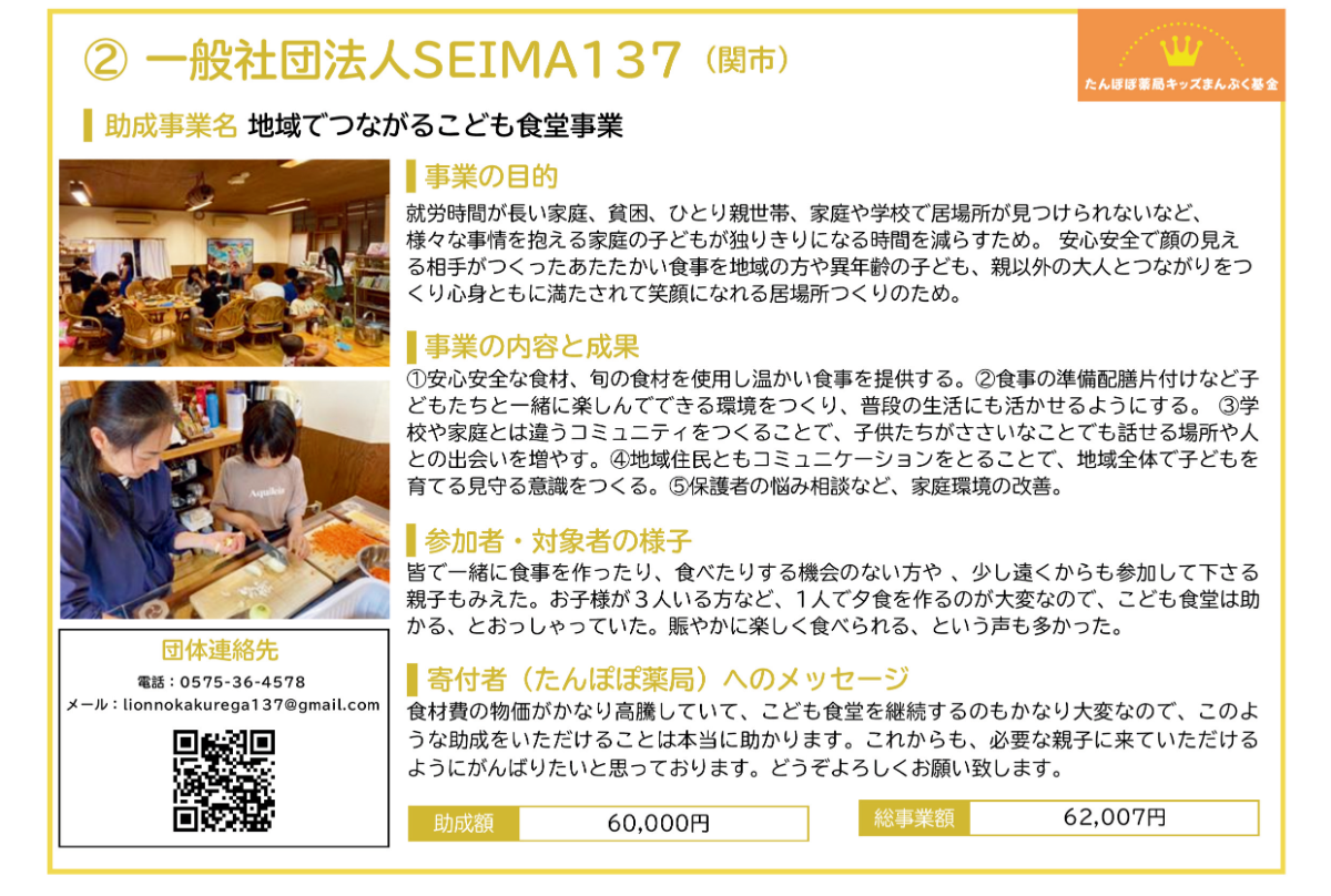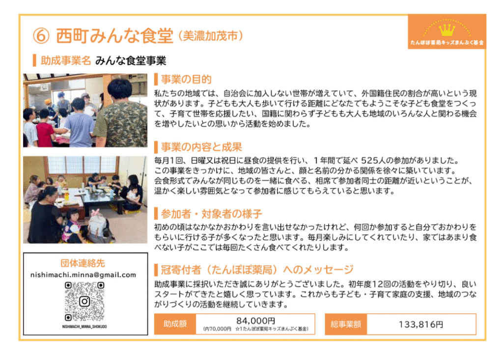 ■ たんぽぽ薬局キッズまんぷく基金「こども食堂応援助成」(2023年度からの継続2年目)