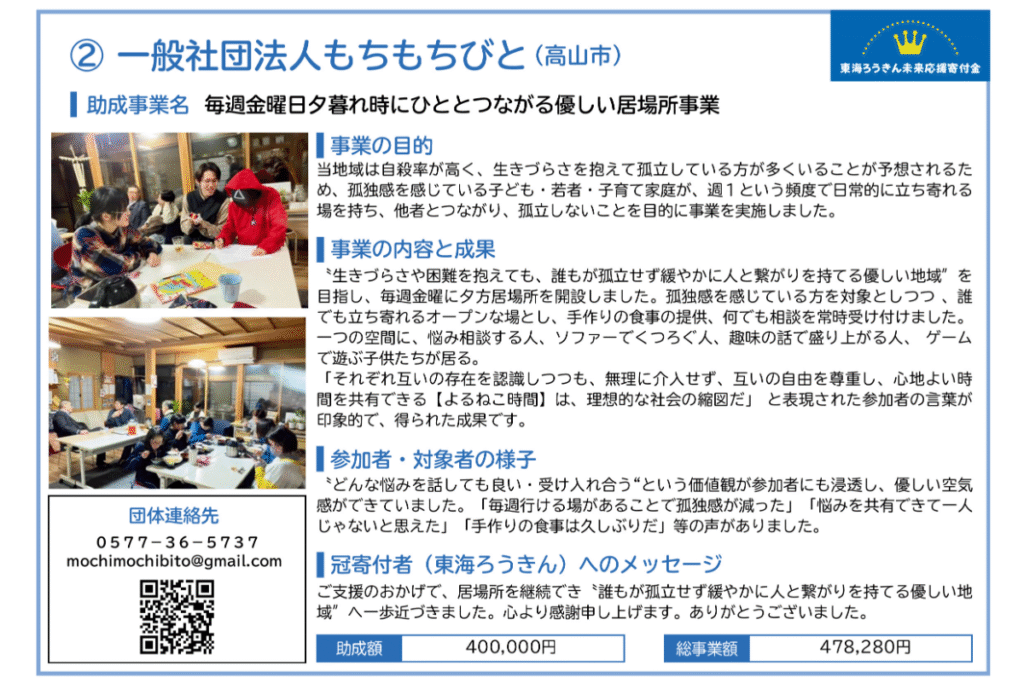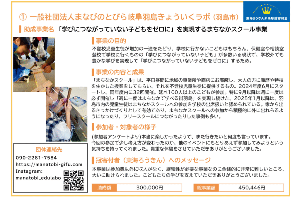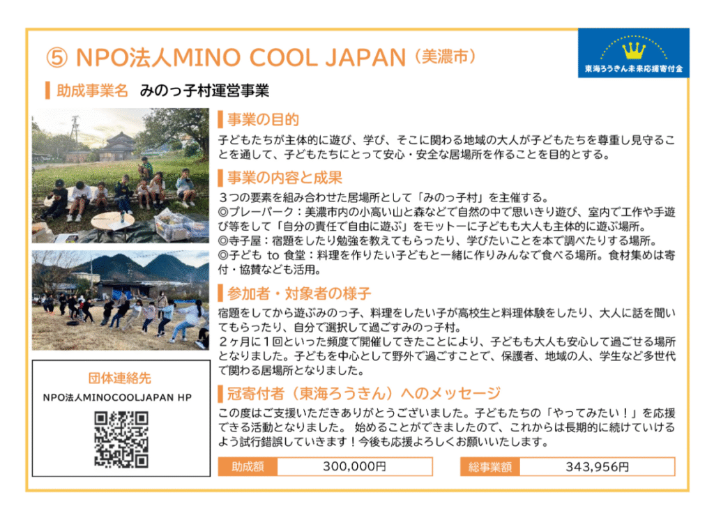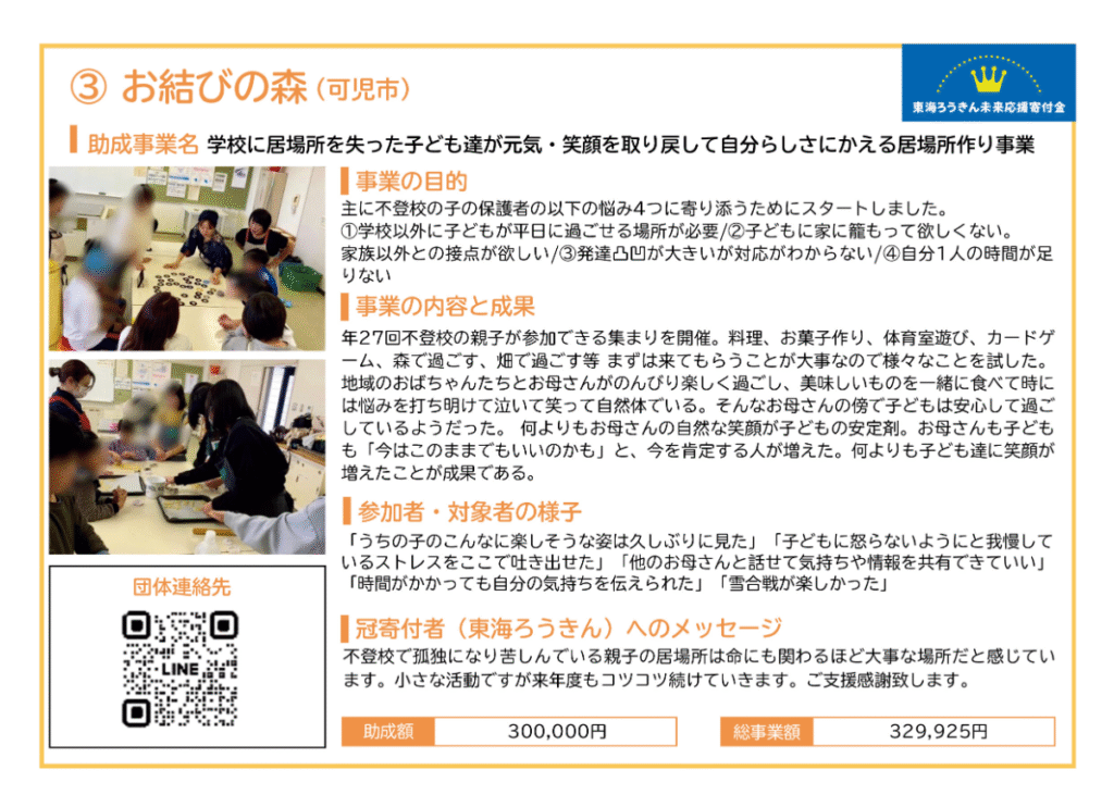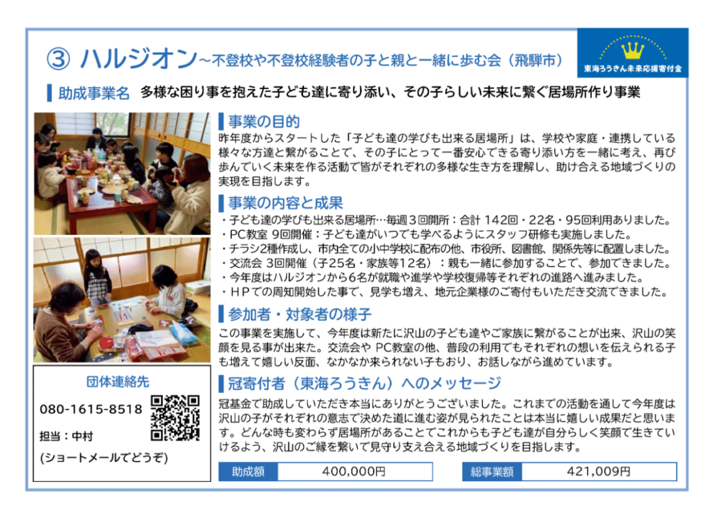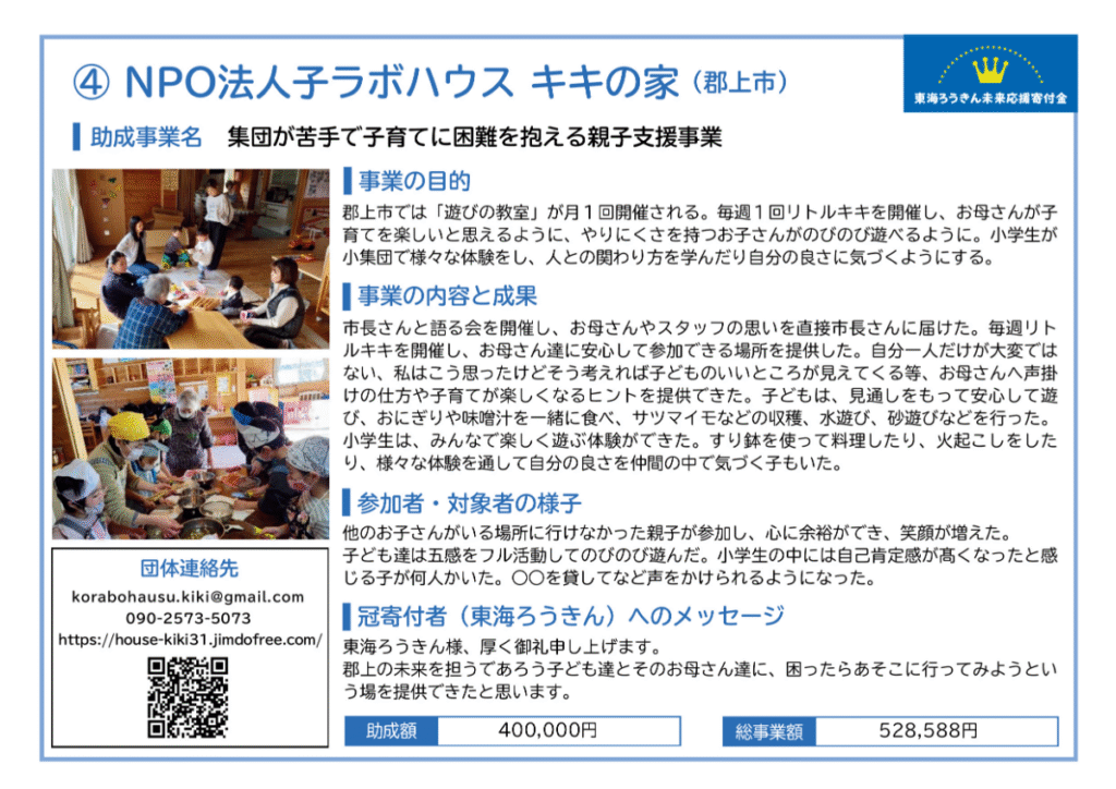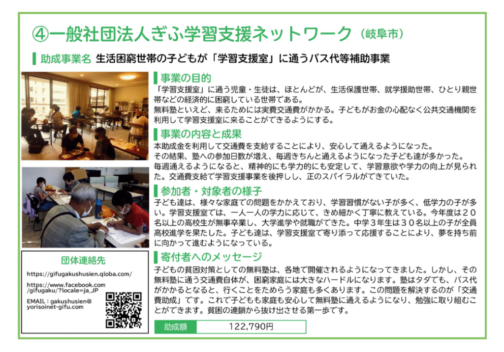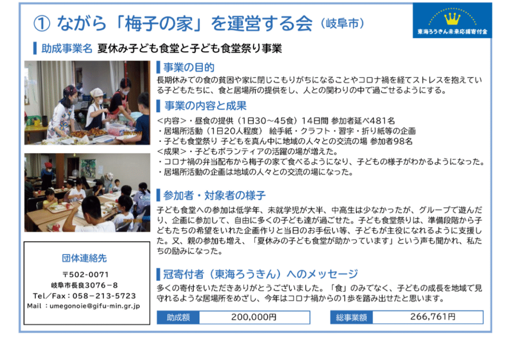 ぎふハチドリ基金助成事業は、市民からの寄付金を原資に、困難を抱える子どもや若者、子育て家庭を支援する事業に対して助成しています。